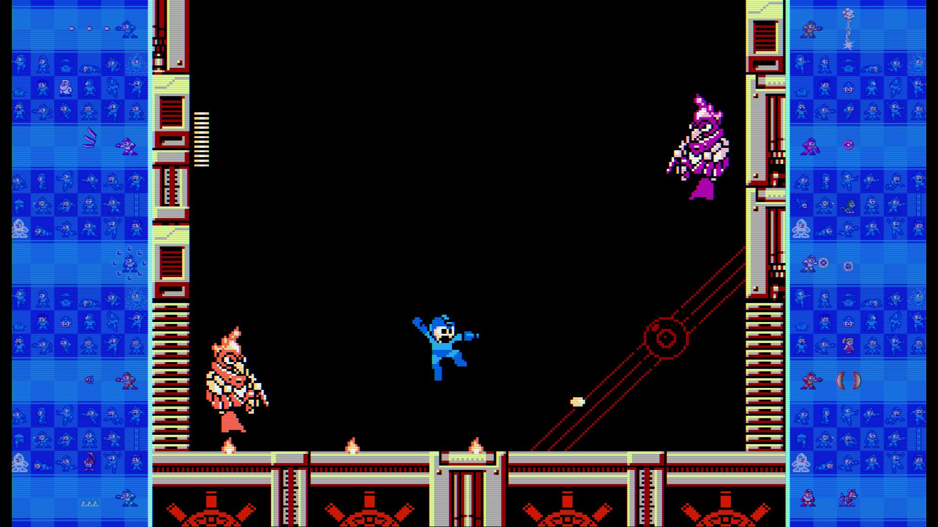 Mega Man is a set of rules common across, at the very least, ten core games. Eight (usually) Robot Masters must be defeated before Mega Man can tackle a more dynamic gauntlet in Dr. Wily’s fortress. Each Robot Master has a unique ability that can be collected and used, to great effect, against other Robot Masters. Some of these abilities will also aid Mega Man’s platforming abilities.