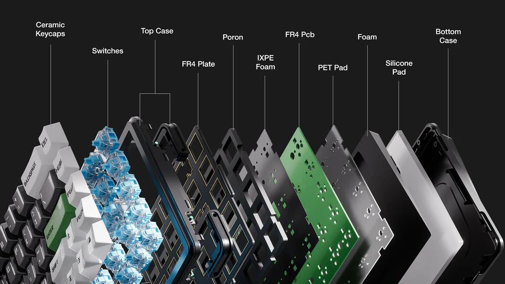 The Nada 65 features a gasket mount along with multiple layers of foam, poron, and silicone that absorb higher-pitched keyboard sounds. When pressing firmly down into the keyboard, there is no give – it’s a solidly built unit that absorbs sound quite well while also producing deep thocks thanks to the Nada 65’s custom switches.