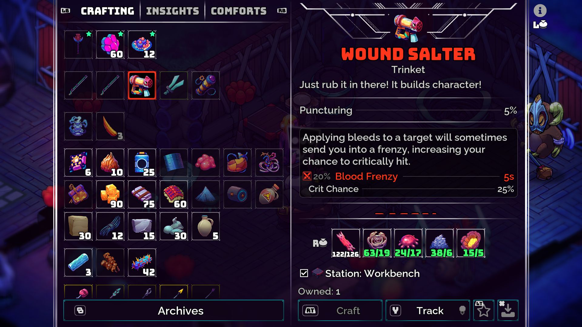 Unlocking new recipes, ingredients, pets, and other tools can feel like an idle mobile game instead of a traditional sim grindfest. When I took Flux and chatted up Graal or Oowee (two of the many NPCs), I could task them with researching new insights over a set period of time. In the early game, it would often feel like I was artificially gated by having to wait several minutes for an NPC to discover a recipe, this made the early game feel especially sluggish. Later in my run, however, I had no issue having my NPC friends work in the background to research new technologies – I always had something else to do, be it farming for resources, completing small quests or exploring new parts of the map.