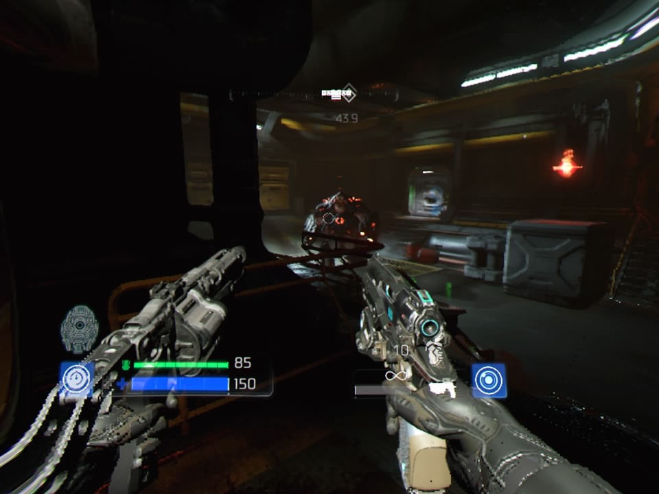 As expected, Doom’s usual stack of insane firearms arrives in quick order. The pistol has infinite ammunition and will always be there for you. Two different shotguns, a pulse rifle, a normal rifle, rocket launcher, a gauss canon—if it was in Doom, it’s here. Weapon mods, found at obviously placed upgrade stations inside of each level, return as well. Doom VFR truncated run-time, however, reduce the number of mods down to just one for each weapon.