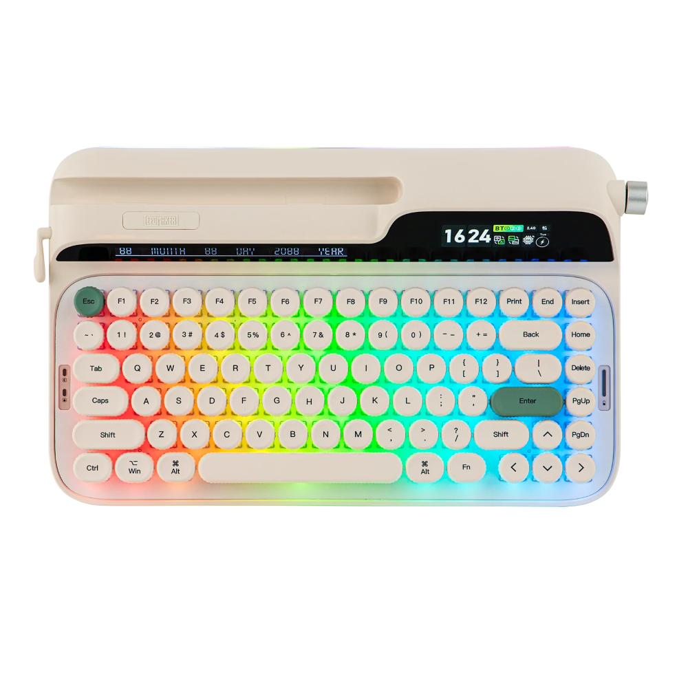 On the technical side of the tracks, and as mentioned previously, the keyboard comes with hot-swappable triple modes, which keep the keyboard within modern times. It also works with the Epomaker driver and features gorgeous LED lights underneath. Again, it lives across multiple decades and is built with multi-generational users in mind. While it’s not going to be a go-to keyboard for replacing that perfect keyboard hardware that drives your Fortnite sessions, it still contains modern amenities that remind users that it should be taken seriously beyond just its artsy aesthetic.