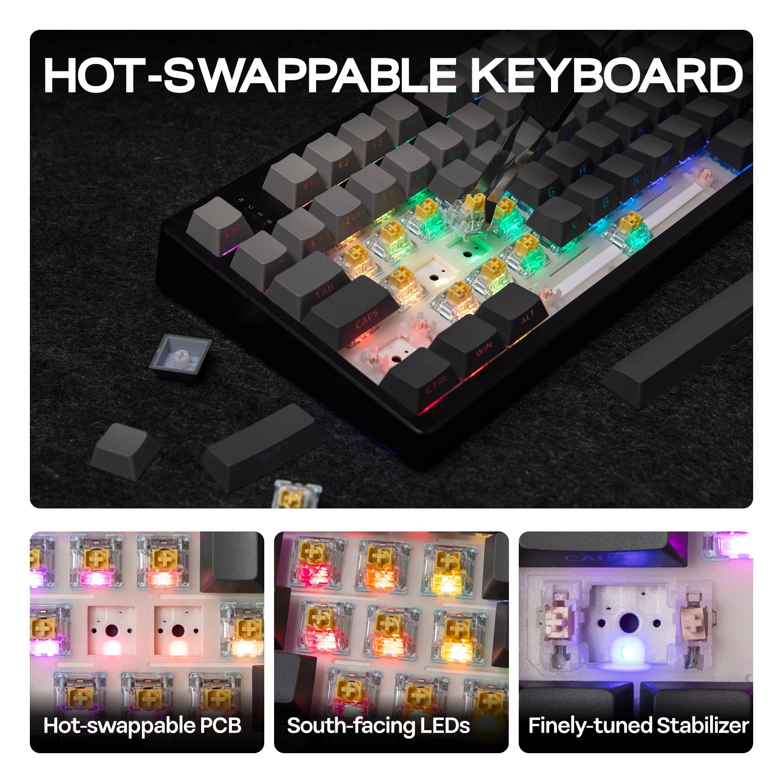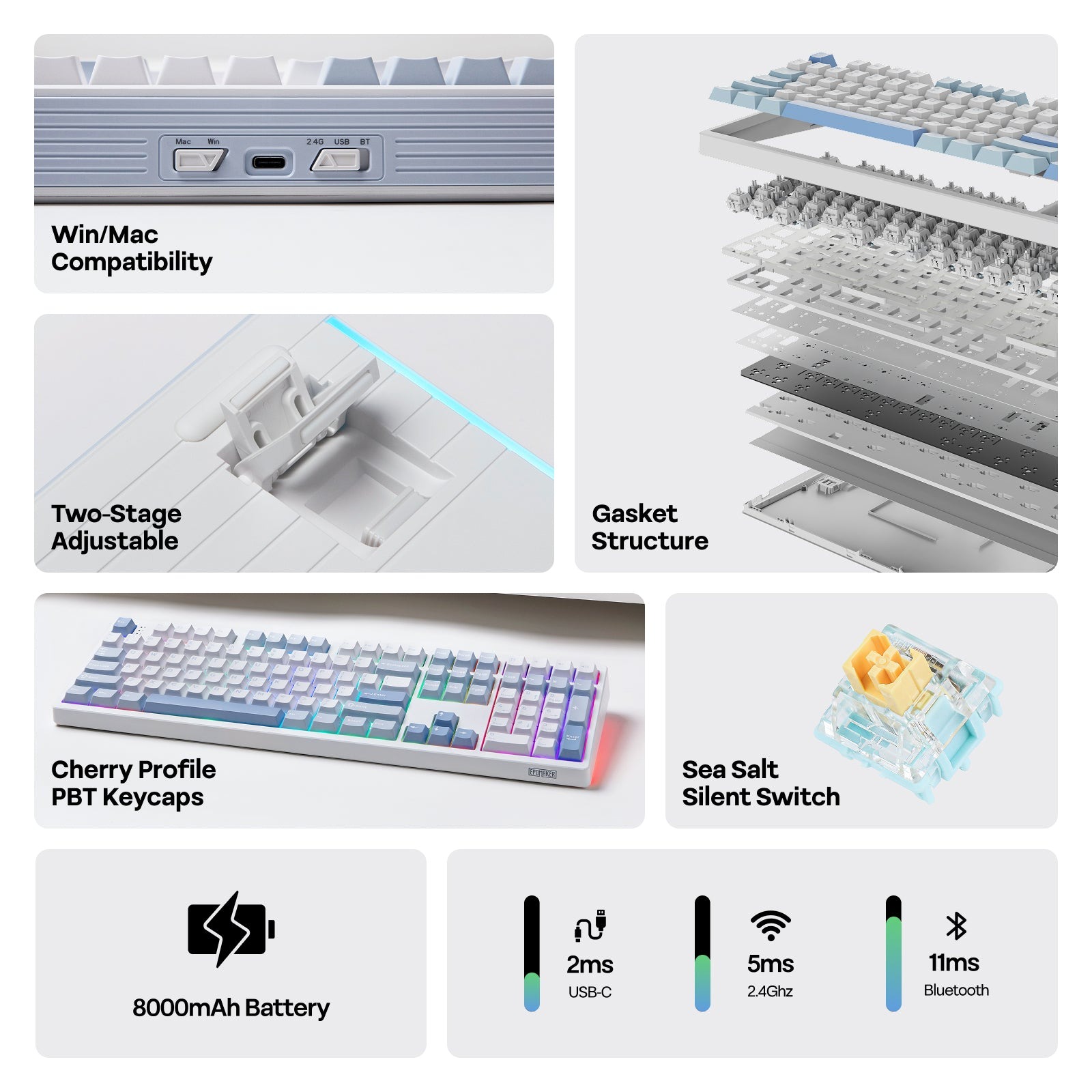 Internally, Epomaker has added multiple layers of foam ranging from a poron sandwich pad, IXPE switch pad, PET sound-enhancement pads (I have no idea what sound-enhancement pads are), along with poron and silicone pads at the bottom of the case. Technical and marketing talk aside, the keyboard is clearly built with a deep and creamy audio profile in mind.