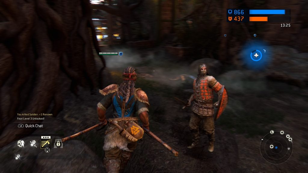 Before we dive into the real heart and soul of For Honor, it would be a real disservice to not acknowledge the astounding single player campaign. While I felt as if it was more of a training grounds for multiplayer, the story Ubisoft has crafted is intriguing and interesting enough to finish. Players are able to able to replay through story missions on harder difficulties to earn “story experience”, which they can use to get better upgrades/feats to use through those story missions. There are only three chapters (one for each faction), and each offer a great opportunity to play through all of the faction’s classes that players can unlock later in multiplayer. Of course, For Honor’s strong gameplay elements keep all of the story missions fun and exciting, and it’s hard not to have fun bashing lowly soldier’s heads in with the hilt of a sword.