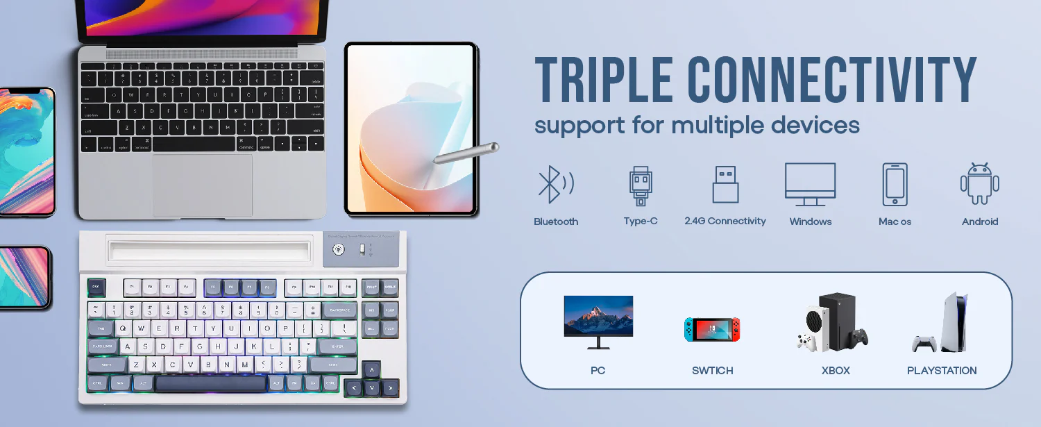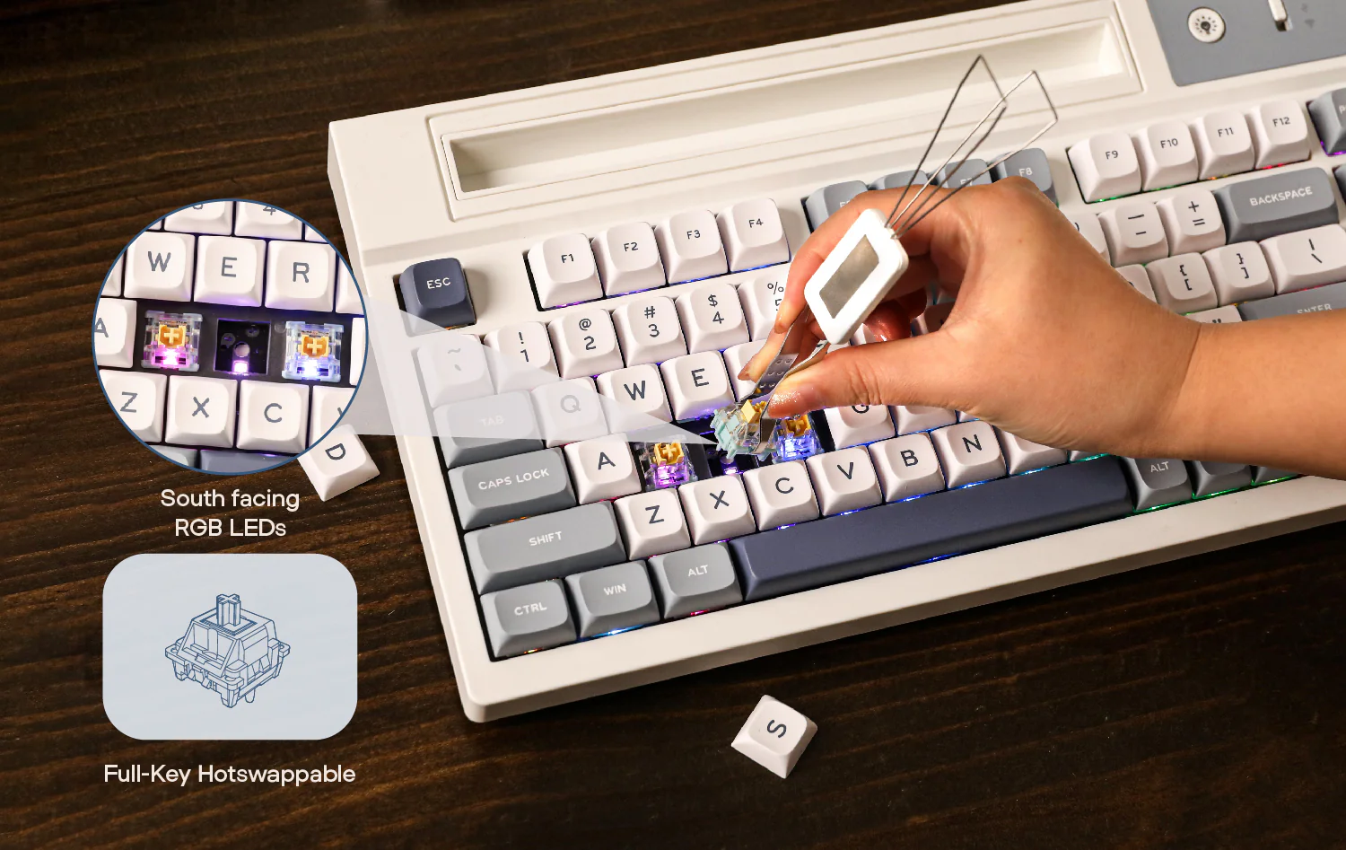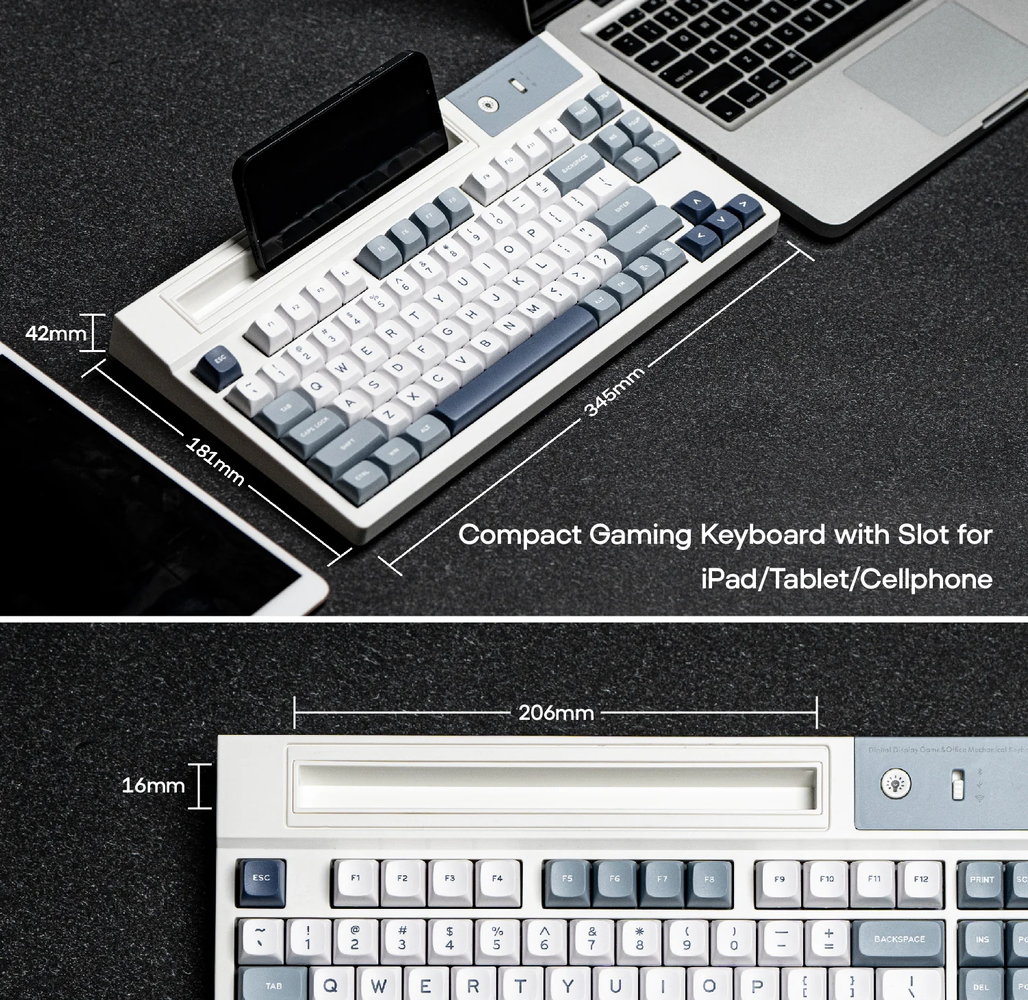 The DynaTab75 is just as much retro as the DynaTab75X, but tailored for utilitarian consumers who want to place their favorite mobile device at the top of their keyboard while still keeping the traditional retro-aesthetic that Epomaker captures with the DynaTab line of keyboards.