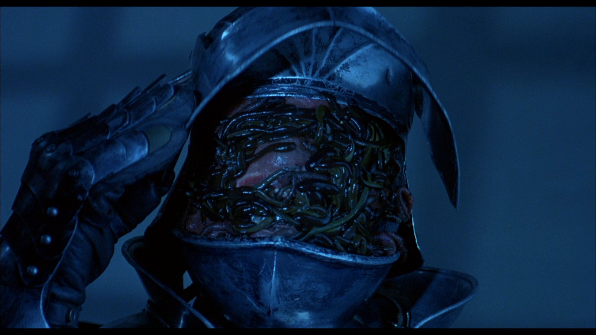 Gothic is presented in 1080p High Definition Widescreen 1.85:1. The print appears to be in relatively good condition, with a few scratches and blemishes here and there, but nothing major. It has been cleaned up quite nicely, and although the majority of the film takes place at night in dark settings, color levels seem to be in line, and grain is manageable at a consistent level.