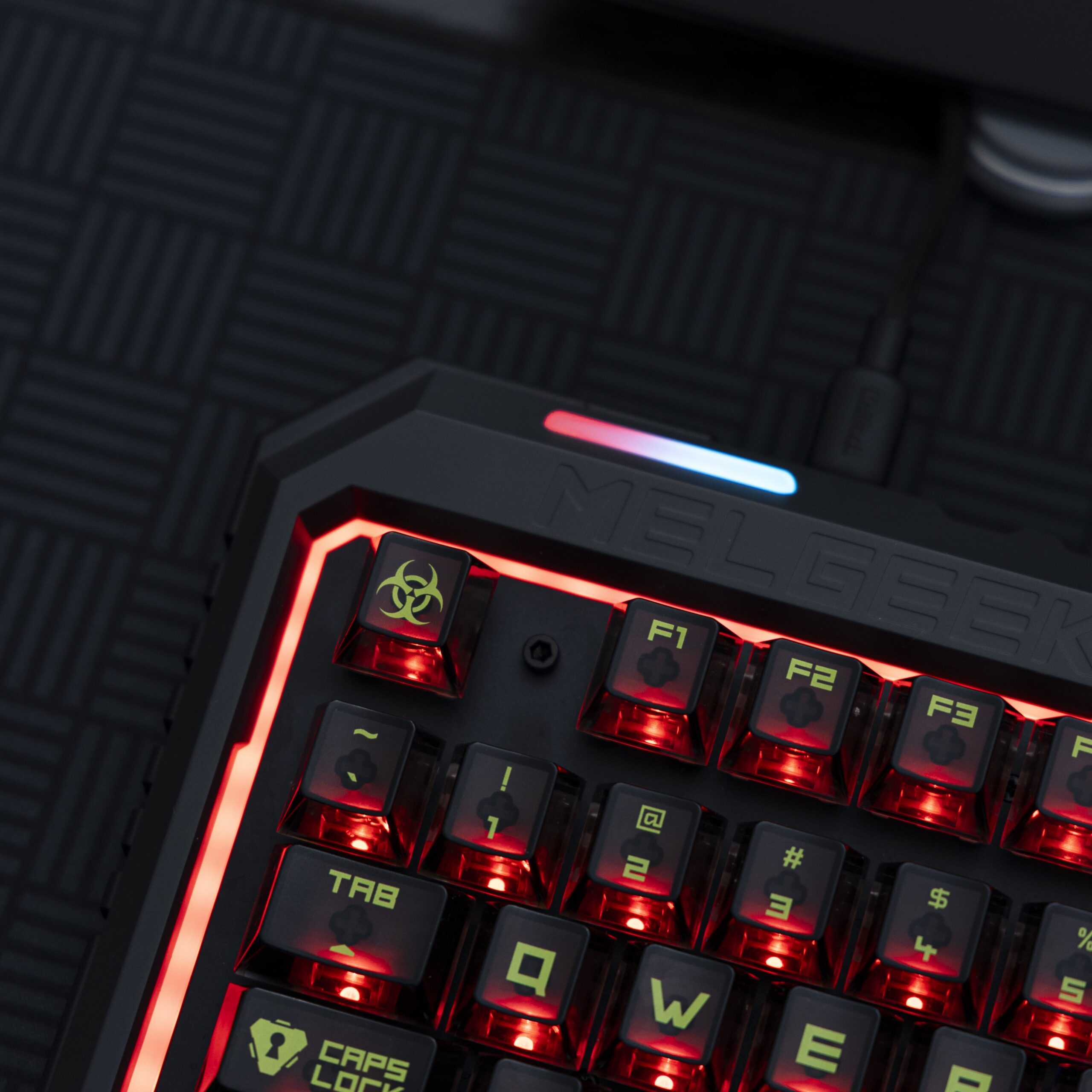 When I first opened the box, I was presented with the keyboard, a braided USB-A to USB-C cord, keycap pullers, some stickers, and a simple instruction manual that pointed me to the MelGeek website to download the keyboard companion software, MelGeek HIVE (more on that in a moment). Thankfully, I didn’t have to set much up; I simply plugged the keyboard into my desktop tower, it lit up, and I was off to the races.
