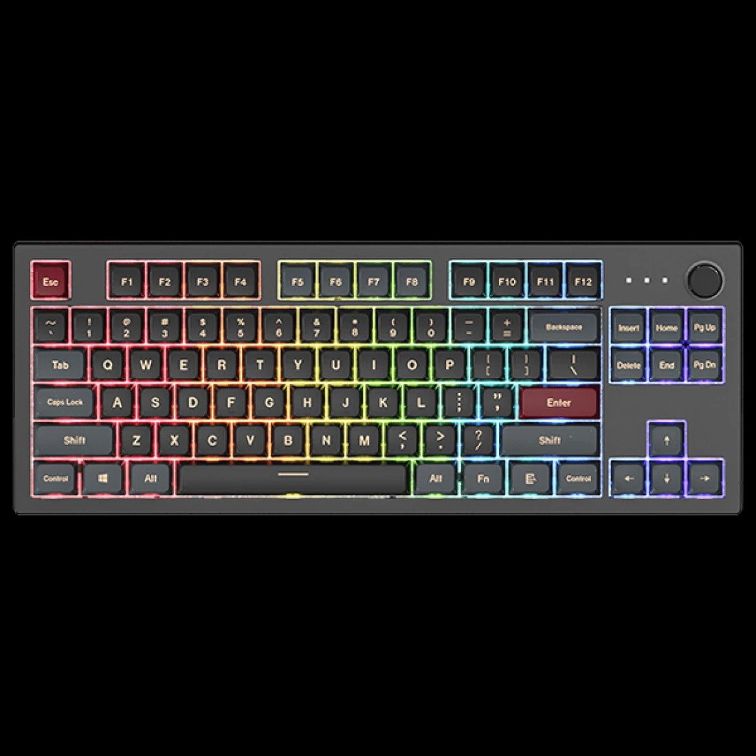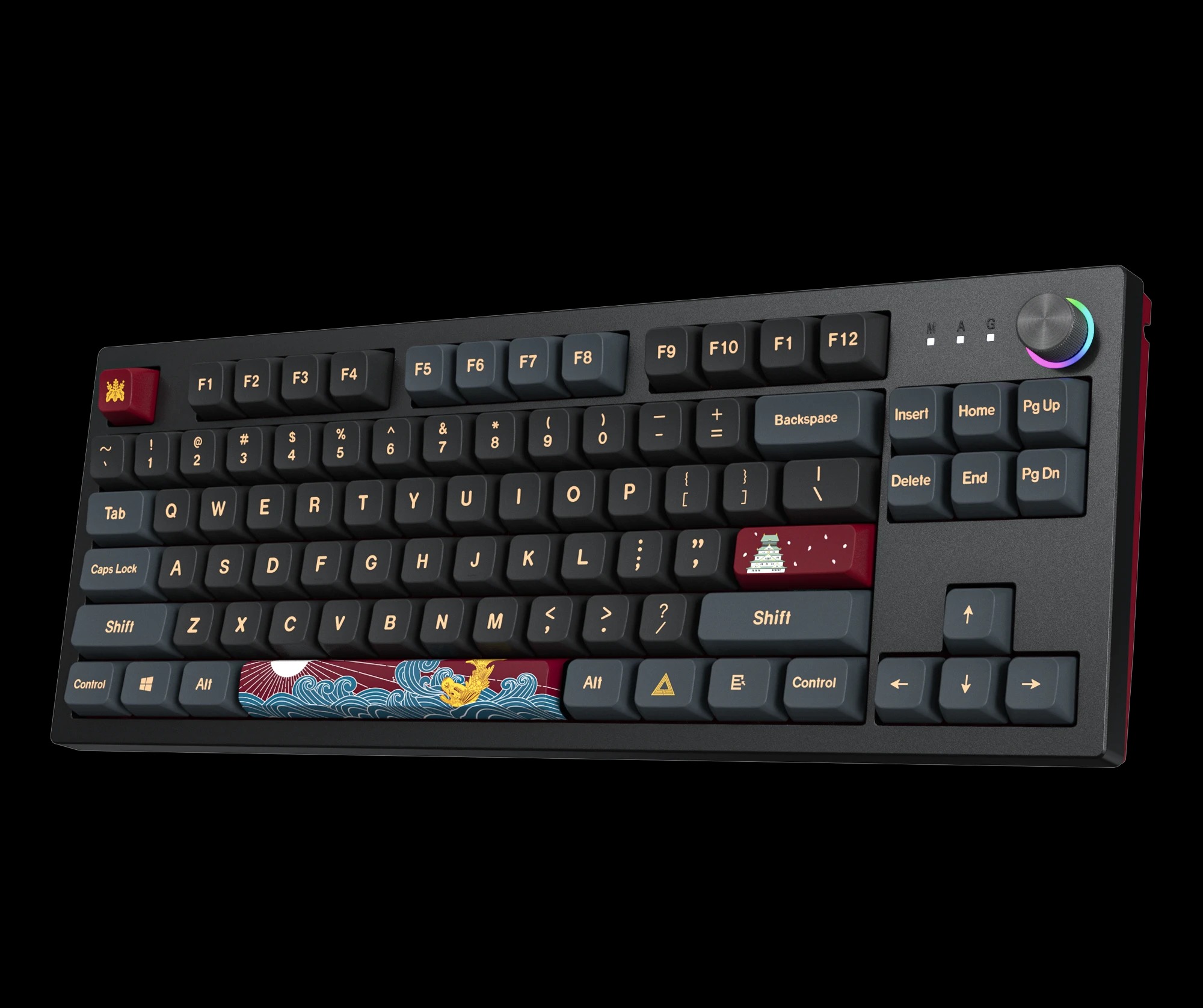 The TKL’s dual-color color scheme is a nice touch, as it doesn’t look too flashy or loud on my desk. The Darkness color has several accent keys in red that add a small splash of color, but it looks as though it would fit right in on someone’s desk in a professional office space. MONTECH also includes a small set of artistic keycaps (enter, spacebar) that players can easily swap out, which is nice. I wish other manufacturers supplied additional keycaps like these – the ones that come with the MKEY are artsy and themed around East-Asian motifs.