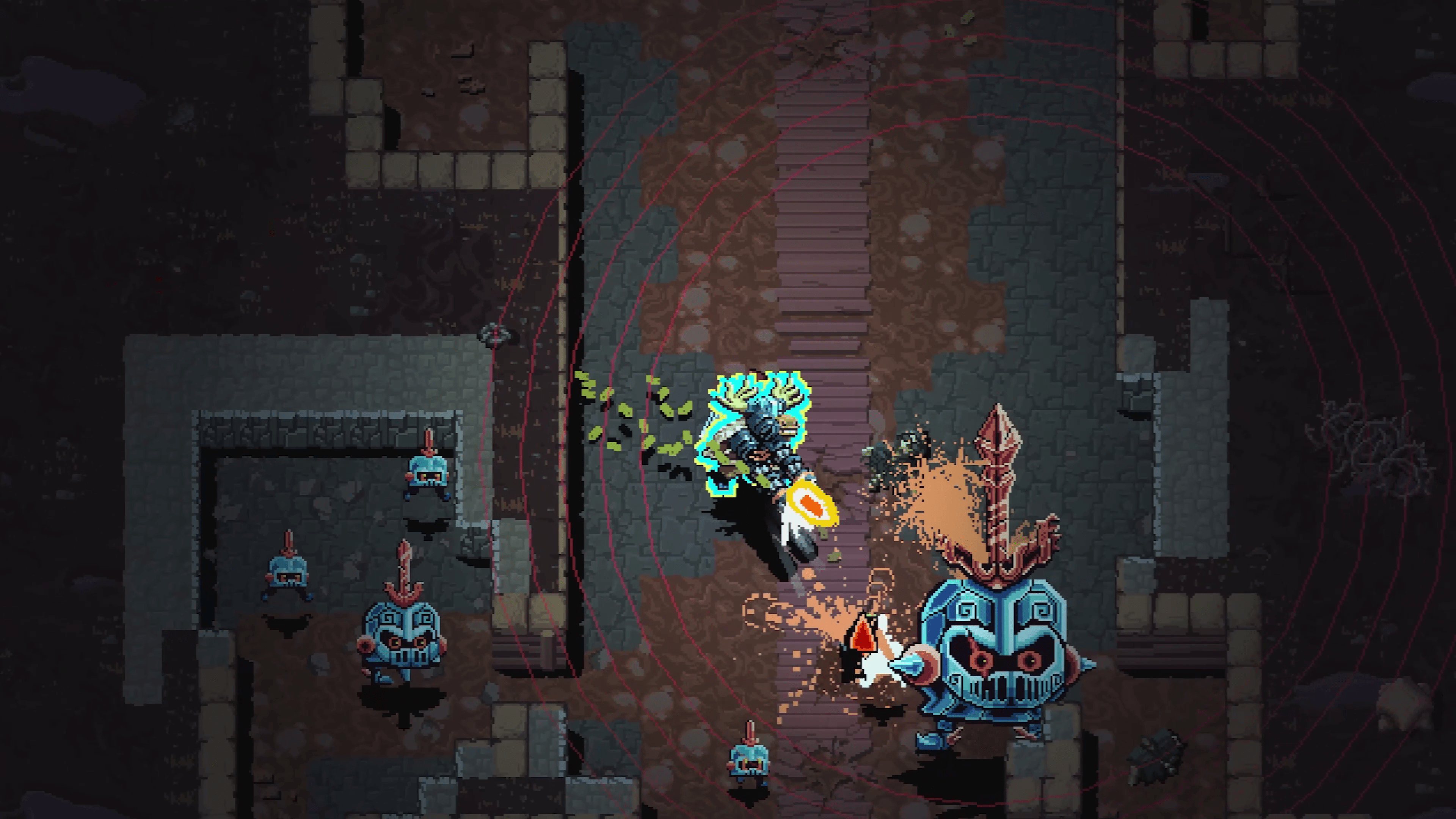 Odinfall’s thematic is very unique, making for a roguelike twin-stick shooter that’s capable of standing on its own without reusing common character archetypes from other games. The decision to fuse cybernetic futurism and Norse mythology is excellent in that regard. I never thought I would see a serpentine Loki that looks more like a cybernetic Overlord than a god of mischief, but I dig it! Levels and enemies are quite colorful, with enemy bullets using a bright red aesthetic to denote danger in a colorful apocalypse. The soundtrack feels like a cross between Advance Wars’ gritty and perky guitar riffs alongside Metal Slug Tactics’ plucky nostalgia bombs. I can’t wait to hear more of the soundtrack in the full release!
