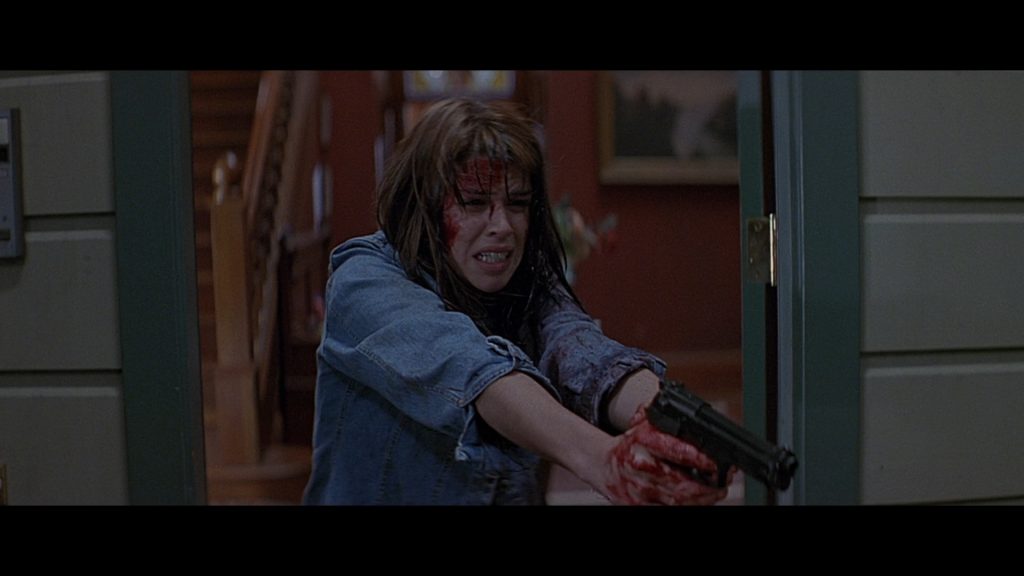 Scream is presented in 2160p 4k Ultra High Definition Widescreen 2.39:1 featuring Dolby Vision and HDR10. This presentation is exceptional, especially the Dolby Vision, which produces the dynamic meta-data that ensures the levels in each scene look the best possible. The deep darks are really noticeable here, with impressive clarity as well. As many times as I’d seen the movie I noticed things I hadn’t in earlier releases, such as when the boyfriend is moved outside in the chair in the opening sequence before the light is turned on, and even the sparkling nature of the killer’s costume, which always looked pure black to me. Grain is well-balanced in this release, but the bright and vivid colors contrasted against the darker sequences make this an absolute must-see for fans of this film.