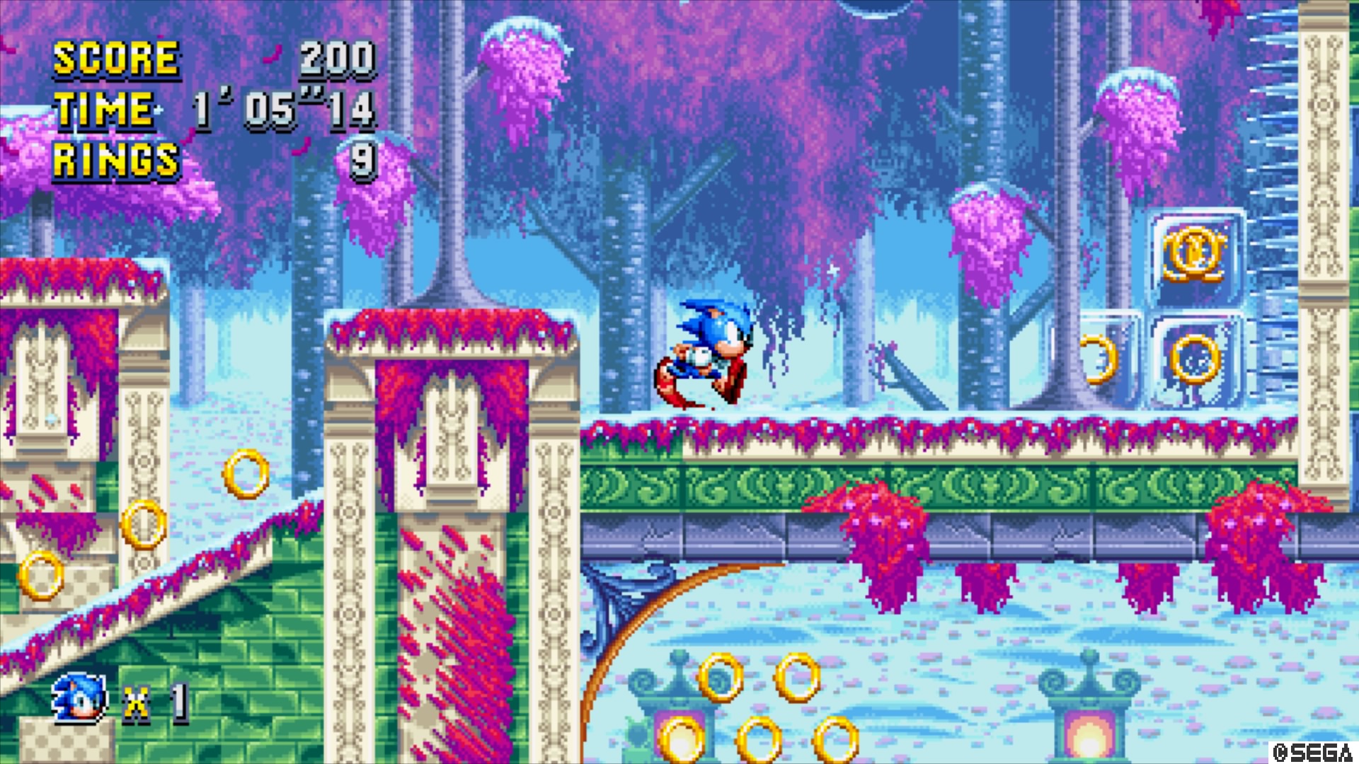 Part of Sonic’s character is wrapped in mechanics exclusive to individual levels. Casino Night Zone’s trademark pinball tables were as important to Sonic 2’s identity as the spinning, momentum-dependent top was to Sonic 3’s Marble Garden Zone. Gimmicks are a welcomed, though sometimes evasive, shift in performance and, in the case of Ice Cap Zone, a chance to infuse Sonic with modern extreme culture and allow him to snowboard down a mountain. The 90’s were a treasure.