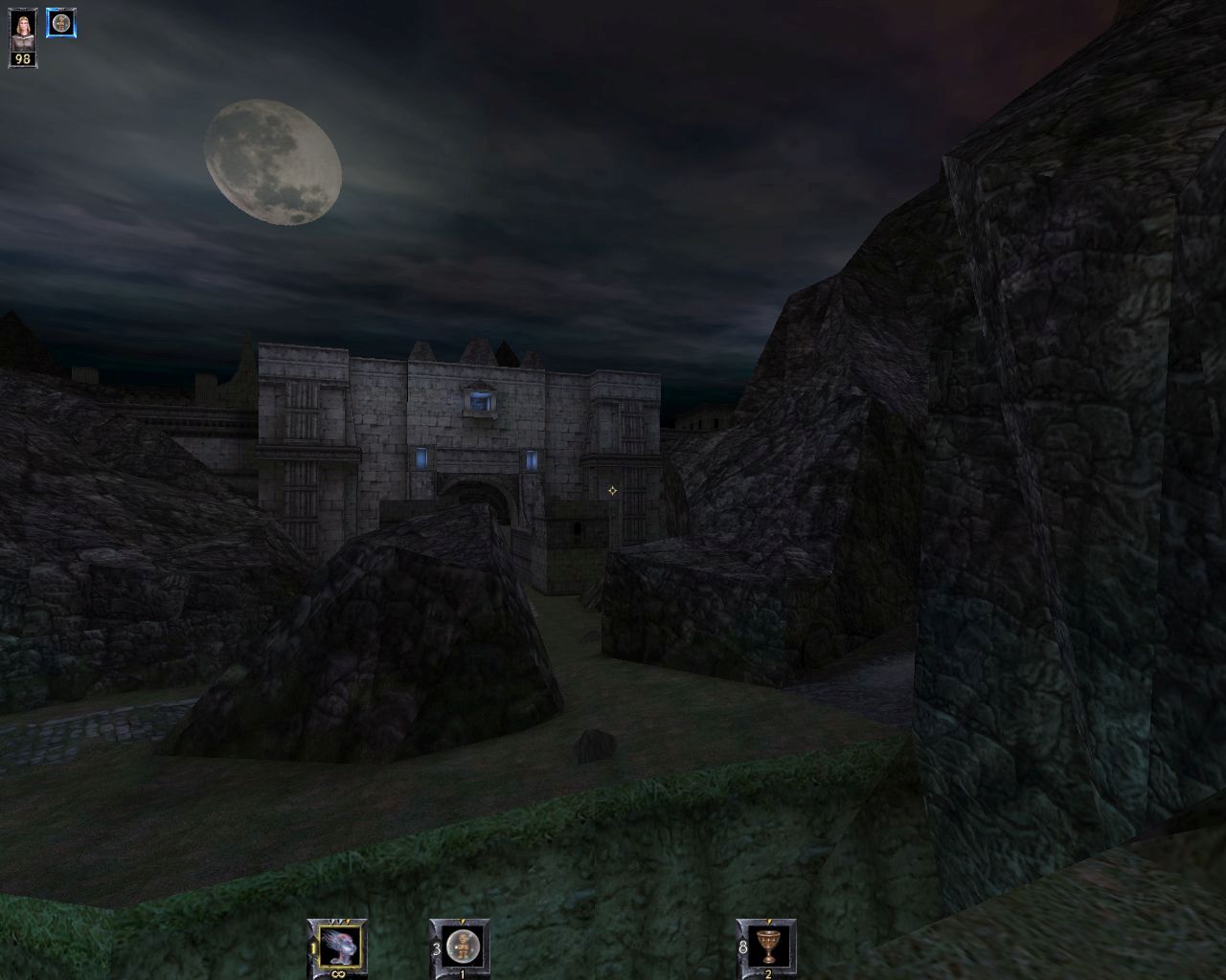 The Wheel of Time is both similar in some basic ways but also rather unique to anything I have played before. I quickly realized the game was different enough I would be best served reading the manual. Remember, this game originally game out in 1999, when quality, detailed, printed manuals were still a thing, and thankfully GOG provides us a copy of the manual (though it appears to have come from replacmentdocs.com). The manual provides not only a nice intro to the story, but also covers most every other aspect of the game in good detail. The HUD, for example, warrants some explanation, seeing as how this game does not use any traditional weapons at all, not even a sword. Every offensive or defensive ability in the game is performed with a “ter’angreal,” or a magical artifact. These often have effects that last a certain amount of time, and can do things like level-up (or down) your other abilities or track you (or enemies) like a heatseeker. To that end, the HUD has special markers to indicate such things. There are also some levels that have a timer on them, and that appears in the HUD.