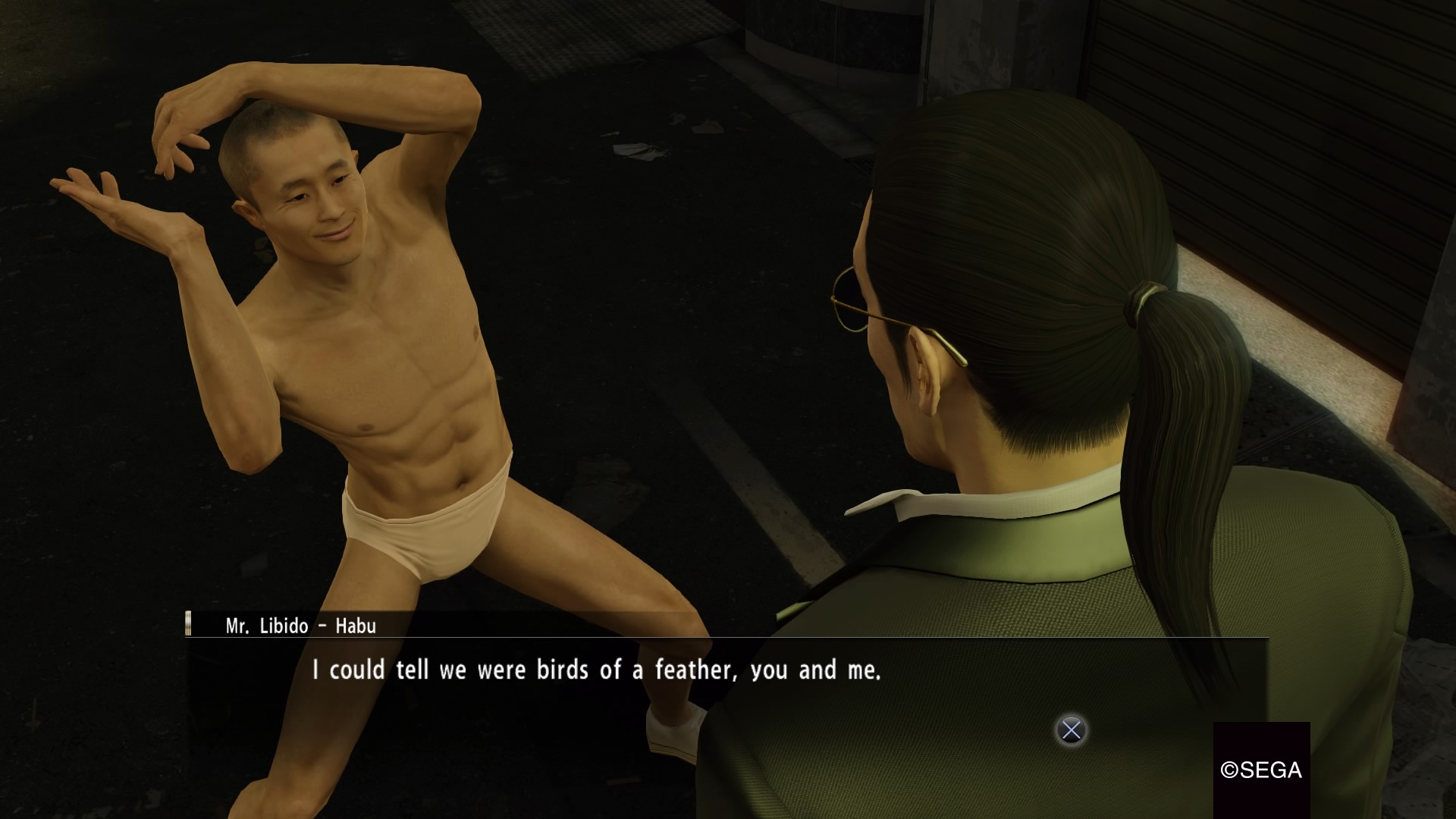 Here, very briefly and intentionally divorced of context, is a small helping of my substory adventure through Yakuza 0: I distracted children so a human statue could take a piss, participated in an escort mission where I had to defend bizarro Michael Jackson from zombies during a music video shoot, extract a woman from a cult, accept legendary pornography from a ghost to satisfy a poor employee of a videotape shop, undergo a stealth mission where I helped a child obtain a softcore magazine, engage in a disco dance battle with an escalating series of performers, and call a mob boss off a nice man trying to sell totally legal mushrooms. That was seven and there are one hundred of these in Yakuza 0.