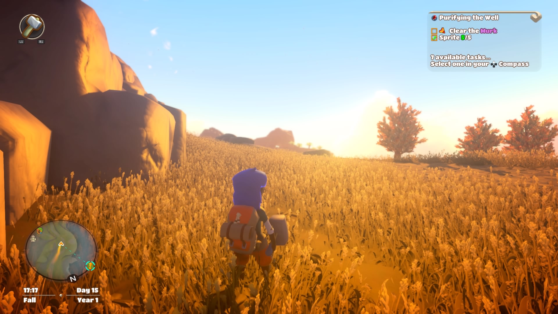 This is easy because you are also a Sprite Seer. Sprites are tucked away across the land and, depending on how many you have, possess the ability to clear away pockets of Murk from each of Gemea’s afflicted regions. Sprites can be found by solving rudimentary puzzles, aiding the locals with simple requests, or simply idling about Gemea. There are twenty two Sprites in Yonder, but (I think!) the most that are ever required to clear away Murk are just thirteen.