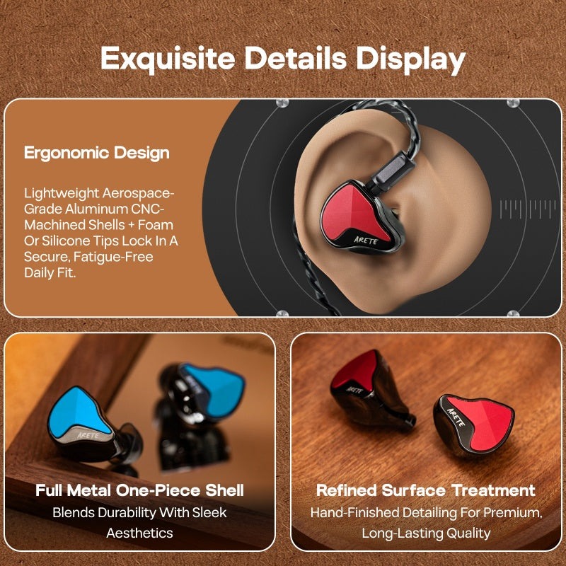 Let’s move onto the audio quality. While the original Arete was tuned for flat and neutral midranges with clean bass, the Arete II was tuned for fuller audio. This new model now supports a boosted and textured midrange, treble extensions, and dual listening modes thanks to the physical switch.