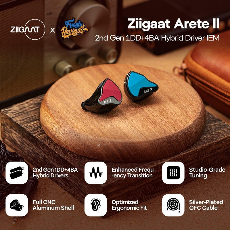 The ZiiGaat x Fresh Reviews Arete II is a very fun set of IEMs. The subwoofer inside these little IEMs makes pop and dance music sound like it’s coming from a club, which is perfect for entertainment. On the gaming side of things, these IEMs contain the perfect blend of acoustics that amp up the immersion factor that a traditional headset cannot provide. If you want to listen to the rumble and slam of your favorite tracks, these IEMs are a must have!